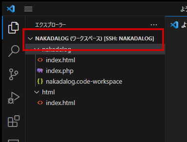 上記記事では /var/www/nakadalog が Document root に設定されているので VSCodeで開きます。